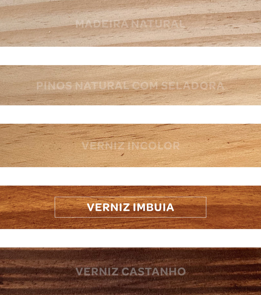 Acabamento em verniz: madeira natural pinus pintada com verniz, para proteção contra sol, borrifo de chuva e umidade– a peça fica levemente brilhante.